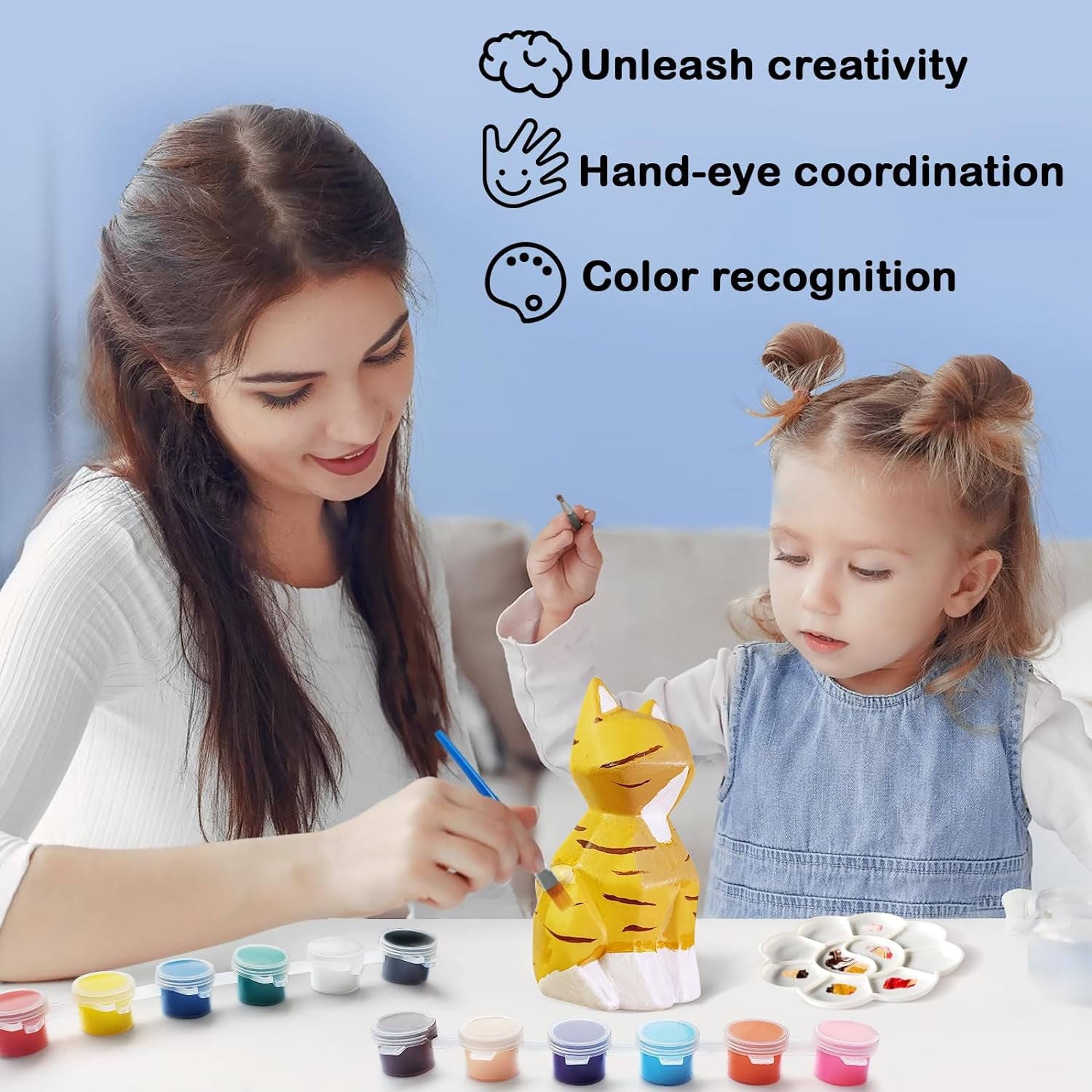 š± PAINT YOUR OWN CAT LAMP - Our Paint Your Own Cat Lamp Set includes everything your child needs to create their own unique cat lamp. With 12 paint colors, 2 paintbrushes, and a color palette, this art kit is the perfect way to let your child's creativity shine. Perfect for kids ages 4-8, this art and craft set will improve their hand-eye coordination and color recognition skills.