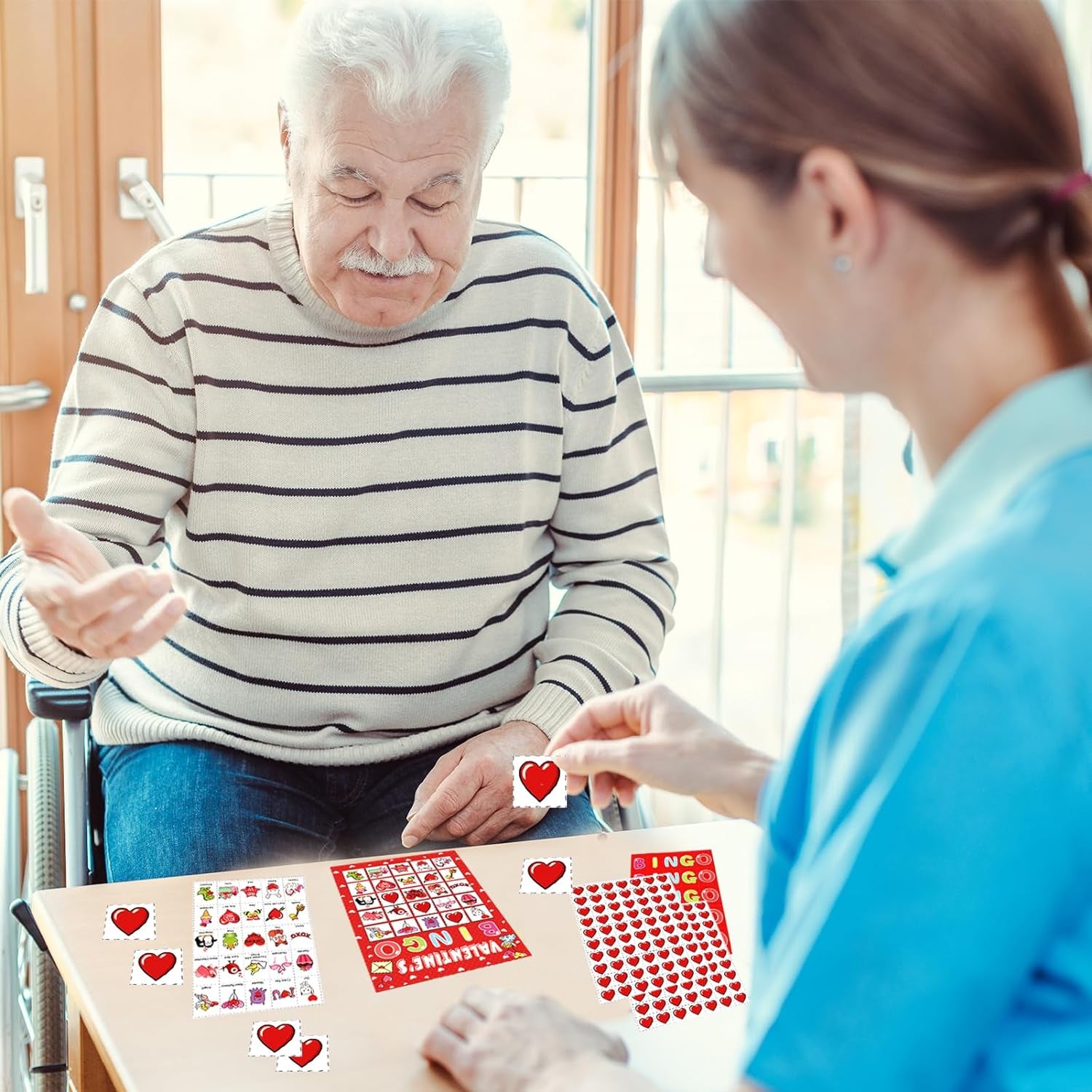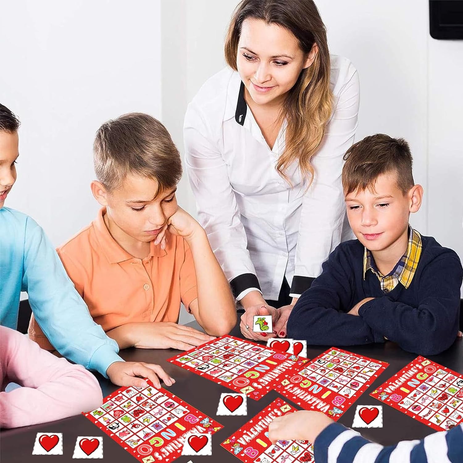 School Classroom Group Activities Our Valentineâs Day games bingo are a lot of English words and helps your child memorize words in a fun interactive way. | Family Party Activity The bingo game set suitable for both children and adults of all ages! | Great Gift for Old Reusable Colorful Thick Game Cards.Perforated design, easy to cut along dotted lines of chip sheets and caller card sheet. They'll add a lot of fun to kids and adults. | Valentine Party Card Games Playing bingo games will be a good way for kids to make friends and get families closer. |
