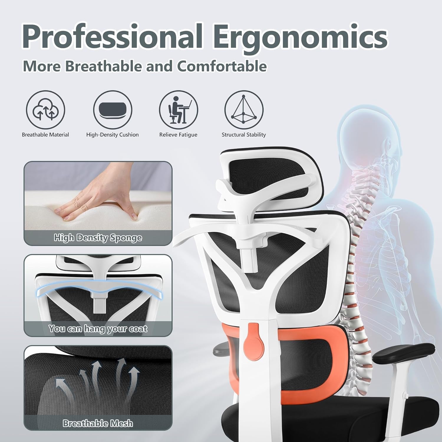 • ๐—›๐—ถ๐—ด๐—ต ๐—•๐—ฎ๐—ฐ๐—ธ ๐—˜๐—ฟ๐—ด๐—ผ๐—ป๐—ผ๐—บ๐—ถ๐—ฐ ๐—ข๐—ณ๐—ณ๐—ถ๐—ฐ๐—ฒ ๐—–๐—ต๐—ฎ๐—ถ๐—ฟ: Winriseย office chairsย are designed with professional ergonomics to protect human body while prolonged sitting. Theย home office desk chairย features a divided backrest to decompress the lower back, and the elastic adaptive lumbar support can effectively avoid lumbar suspension, muscle strain, and lumbar spine injury.