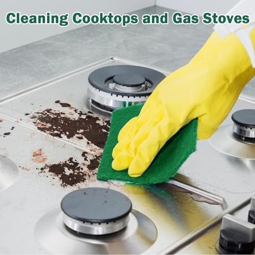 Cleaning various household surfaces, including pots, pans, dishes, countertops, stoves, tile, baseboard, walls, and windows